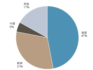 图片1:全球亚搏(中国)市场-美国+欧洲占78%市场份额