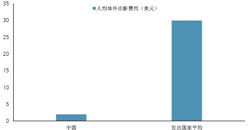 中国人口占比世界人口的20%,但是IVD的市场份额占比全球仅5%;2012年中国人均的体外诊断消费2美元,日本接近36美元,而发达国家平均费用也达到30美金,国内人均费用偏低,因此我们判断中国IVD市场成长空间非常大。