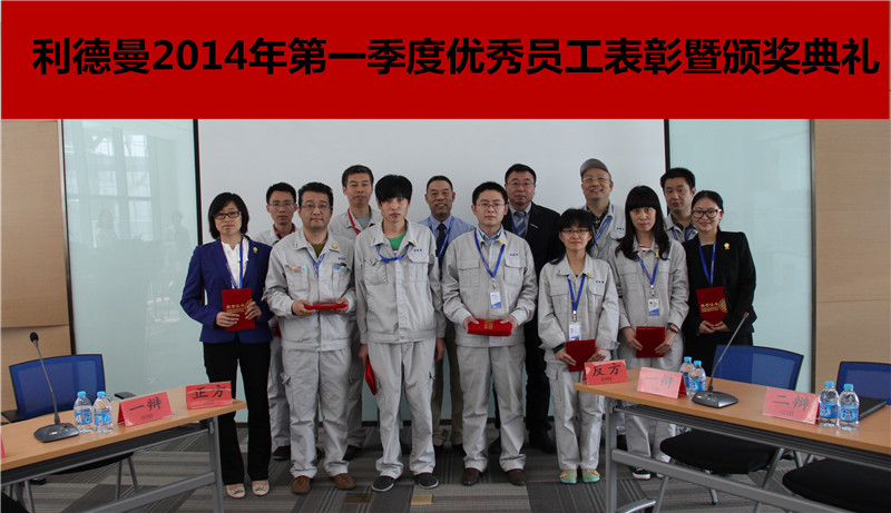 在比赛开始前,YB.COM2014年第一季度优秀员工表彰暨颁奖大会隆重举行。由主持人宣读获选2014年第一季度优秀员工最终评选结果,所有入选者依次上台,由YB.COM执行总裁王毅兴先生为所有获选者颁发荣誉证书,由营销副总裁陈宇东先生为获选员工颁发学习礼包内含价值人民币1000元的学习卡一张及YB.COM慰问卡一张,由生产运营副总裁王建华先生为一季度优秀员工颁发荣誉勋章。所有获选者在接受荣誉表彰后集体合影留念。